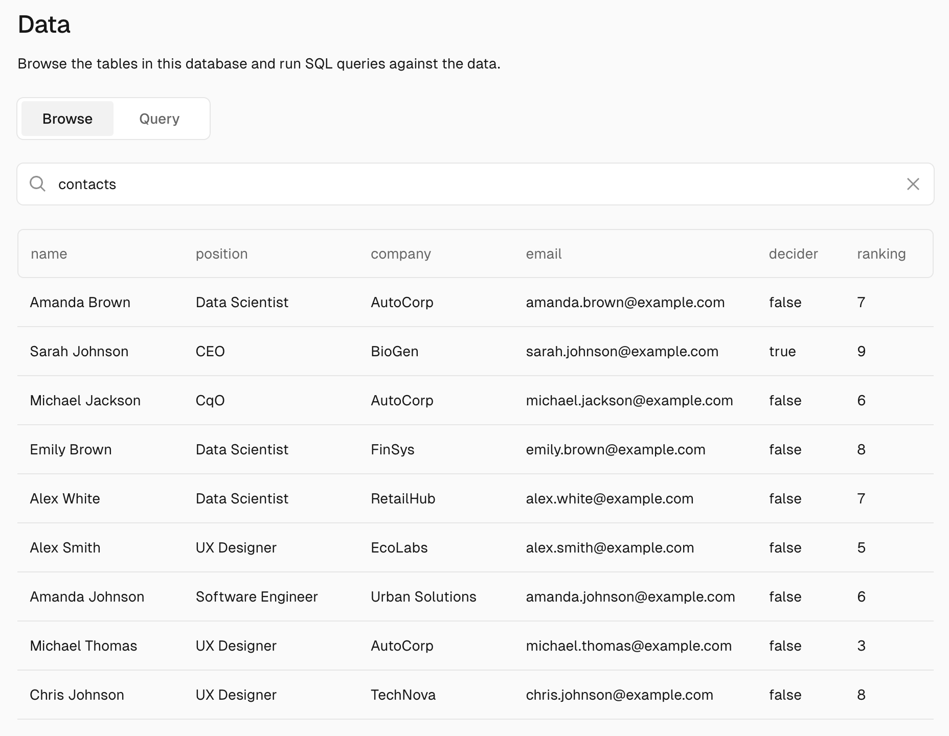 Once completed, the clean, structured, and enriched contact records are saved to the database: